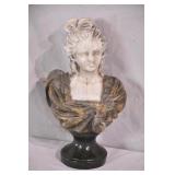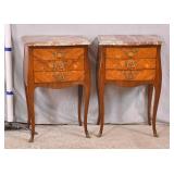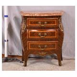 Small inlaid bronze mounted Bombe style side chest with marble top; 68-124 - 3 drawers - serpentine front and sides - 22x12x26