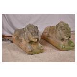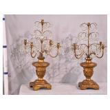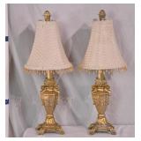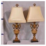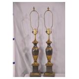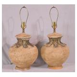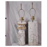 Pair of large distressed lamps; 1054-110 - (finish as-is; chips in decorative areas) - 12x12x29