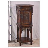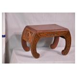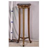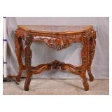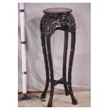 Carved Oriental style plant stand with marble top; 68-217 - X stretcher base - 13.5x13.5x36