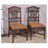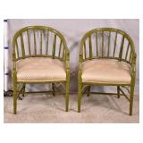 Pair of green cane cut curved back chairs; 68-199 - stretcher base - tufted seats - 23x24x33