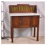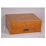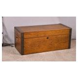 Oak lift-top trunk; 68-210 - (lock and lid support strap as-is) - 40x18x18
