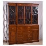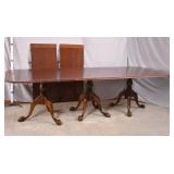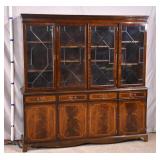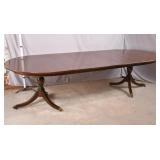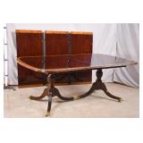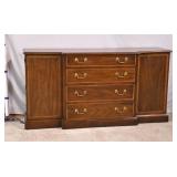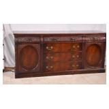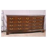 Drexel Heritage inlaid crotch mahogany 12 drawer triple dresser; 68-136 - serpentine front - fluted/canted corners - banded top - (cloudy area in finish on top) - 74x21x34.5