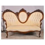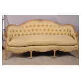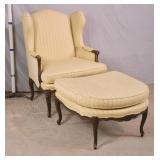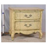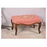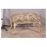 Carved French style ottoman; 68-150 - off-white frame - serpentine sides - 28x19x18.5