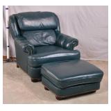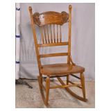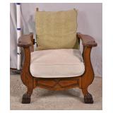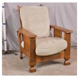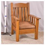 Oak mission style armchair with distressed brown leather seat; 68-142 - 29x31.5x39.5