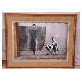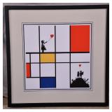 Framed print - composition of red, white and blue by Piet Mondrian and graffiti artist Banksy; 975-405 - black frame - 22x2x22
