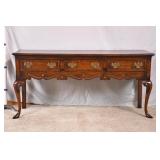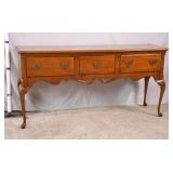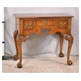 Baker inlaid Chippendale style 3 drawer lowboy; 737-3951 - banded top and drawers - carved cabriole legs with ball in claw feet - (spot in finish on top) - 32x18x28.5