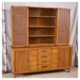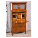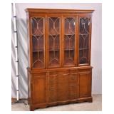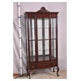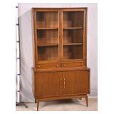 Walnut mid-century china cabinet; 68-147 - divided silver drawer - (small chip in veneer on right side) - 40x16.5x70