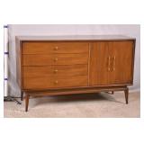 Walnut mid-century sideboard; 68-147 - 4 drawers and 2 doors - formica top - divided silver drawer - 52x18x31