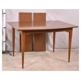 Mid-century dining table with 2 leaves; 68-147 - formica top - 36x70x29 extended; 36x47.5x29 closed; 11.25" leaves