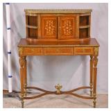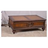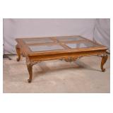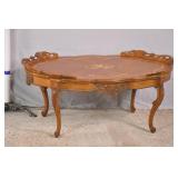 Carved inlaid French style coffee table; 68-676 - cabriole legs - carved gallery - 39.5x22.5x17.5
