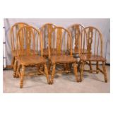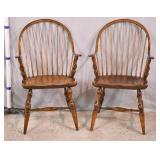 Pair of Windsor style spindle back armchairs; 737-2947 - turned legs and stretchers - carved seats - serpentine front edge - (small white paint mark on top of 1) - 23.5x20.5x38