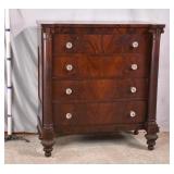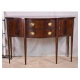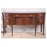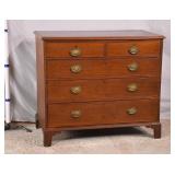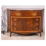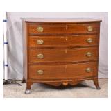 Inlaid mahogany bow front 4 drawer dresser; 474-116 - banded drawers and top - serpentine sides - (finish as-is: chips in veneer; repaired leg) - 52x22.5x35