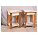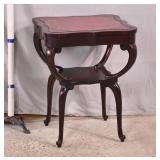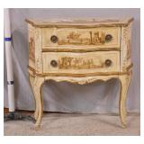 Inlaid mahogany open front night stand; 705-124 - banded top - 2 drawers - 18x13x26.5