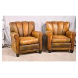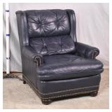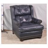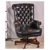 Distressed tufted leather executive desk chair; 13-603 - brass nail head trim - swivel base on casters - adjustable height - tilting seat - (wear on arms and seat) - 30x34.5x45