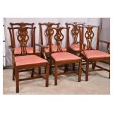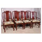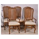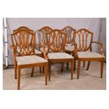Set of 6 Keller mid-century spindle back dining chairs; 68-147 - 2 armchairs; 4 side chairs - (finish as-is; stains on fabric) - 20x22x38.5 armchairs; 18.5x22x38.5 side chairs