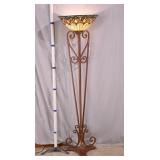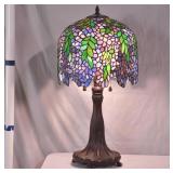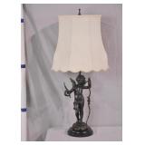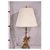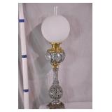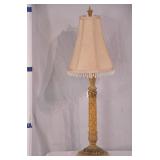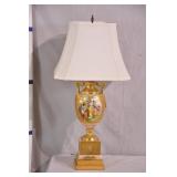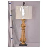 Large ornate lamp with shade; 1056-102 - distressed finish - (leans slightly to one side) - 16.5x16.5x43