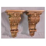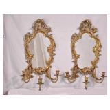 Pair of ornate gold wall sconces; 737-2933 - plate groove on top - 15x7.5x14