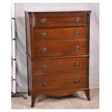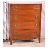 Mahogany bow front chest on chest; 68-133 - 6 drawers - (various spots in finish) - 34.5x20x53