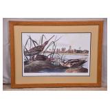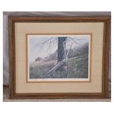 Framed print "Woodie in the Rain" by Jim Mickielsen; 975-388 - artist signed and numbered 547/1500 - 25x19
