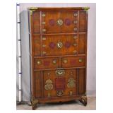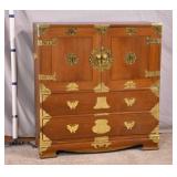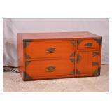 Thomasville burnt orange Oriental style low chest; 736-336 - 3 drawers and 1 door - (finish as-is) - 36x18x19