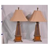 Ceramic and wood lamp with shade; 44-246 - 16.5x16.5x30.5