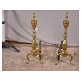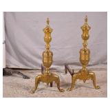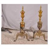Pair of brass andirons; 1056-020 - (one missing finial on log holder) - 7.5x17x10.5 each