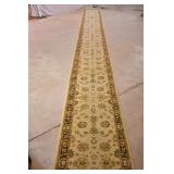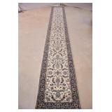 Hand knotted Indian Kashan rug; 736-345 - ivory field with navy border - 2.4'x16.0'