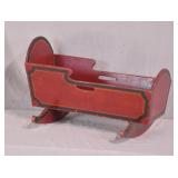 Small red doll rocking cradle; 697-350 - (finish as-is) - 21.5x15x13.5