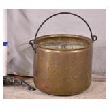 Large brass bucket; 1053-104 - dragon designs on sides - 16.5x14.5x12.5