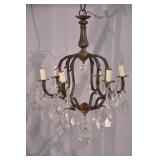 Ornate metal 6 light chandelier with prisms; 736-337 - 18x18x25