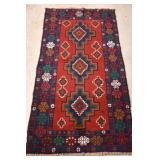 Hand knotted semi-antique Persian Balochi rug; 736-331 - (color bleed on fringe; small bare spots) - 3.5'x6.5'