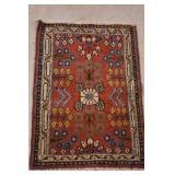 Hand knotted semi-antique Persian Meshkin rug; 736-326 - (age appropriate wear; stains on border; has been cut short) - 2.9'x4.2'