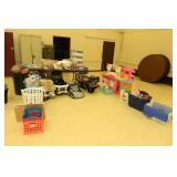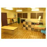 Items include plastic play kitchens incl. Dora the Explorer; car seats; wooden blocks; kid's clothing; artwork; Mackie 12 channel integrated live sound mixer; Wurlitzer stand up piano; fans & heaters; Bingo light up board; rolling chairs; graduation caps/gowns; squash racquets; round top folding tables; printer; kid's themed area rugs; Lakeshore wooden play table; Step 2 plastic play table; dry erase board; conference table; desks; armchairs; boys choir tuxedos; sliding glass doors; Miracle playground with metal bar ladders, plastic crawling tube, twisty slide; filing cabinets; chalkboards; PrimeArray Systems Inc "ServStation" with two HP procurve switch 2324 & Netgear and more. Items located in Poughkeepsie, NY. |