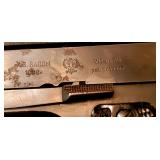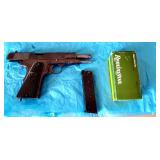 THIS ITEM AVAILABLE FOR PRE-SALE - 1938 Dated Polish Eagle Radom VIS-35 Semi-Automatic Pistol w/ 1 Magazine - This is one of the rare group of Polish VIS Pistols that has the early side markings as manufactured in 1938, the left side of the slide is correctly marked F.B. Radom/1938R followed by the "Polish Eagle" and "VIS-wz.35/pat.Nr.15567", Ser. #22276. There are Polish proof & inspection marks on both sides of the trigger guard, this pre-war pistol has the original grips "VIS" molded into right side grip & "FB" into the left, has slight bluing defects & small pitting on trigger guard ($2500) BKA 98 Movie Prop Gun Replica Colt Revolver Vintage Crossman Model 102 Pellet Air Rifle Gun Pump 22 cal. circa 1920s Handmade Leather Gun Holster Belts World War II Authentic British Soldier Helmet & A WWII Replica Parade Helmet Brand New USMC Ka-Bar Knife Vintage J.W. Begay Sterling Silver Cuff - heavy, designs on both sides 1990 Silver Eagle Coin Small Austin Production Sculpture Signed by Marshall & Large Austin Production by Acoma DeGrazia Plate "My First Horse" Royal Adderley Floral Bone China (Made In England) Clown Figurine Signed by Jun Asilo 1997 John Gallagher (origin Arizona) Carved Wooden Cigar Store Indian - 3ft Height, handpainted & handcarved from Colorado Aspen, Man Dan Indian Tribe Beer Steins Hornick Bros Stoney Point Decoy Ducks (Oakhall Virginia) Microfiber Suede Leather Tan LaZBoy Recliner Chairs - one is electric recliner, swivels & LIFTS, one is manual rocker recliner & has original tags attached & minor (organic?) seat stain 2 Solid Wood Office Computer Desks - One w/Matching Chairs - 1 is a 2 piece Desk Barrister's Book Cabinet Southwestern Area Rug - 91"×64" by World Of Rugs Charles Vickery "The Storm of Battle" Signed & Numbered Limited Prints - Very High Quality Framed & Matting, COA Brimmed Hats Inc. Stetson Crutches & Canes Dark Wood Folding Snack Tray/Table Set Glass Stemware Decorative Rooster Figurines Stainless Steel Pots & Pans - Inc. Cuisinart Pyrex Bowls Gunter Wilhelm German Steel Knife Glass & Stainless Steel Mixing Bowls Small Countertop Kitchen Appliances Stainless Steel Kitchen Trash Can Casserole Dishes Cutting Boards Table Linens Mix of Styles of Furniture - Southwestern & 1990s Solid Pine Southwestern 3 Piece Bedroom Set - Nightstand & 2 Dressers Thomasville Queen/King Wall Unit Headboard Dresser 3 Piece Combo & Matching Dresser w/ Mirror Full Size Beautyrest Mattress Plush "Steffani Plush Droptop" w/ BoxSprings King BedSheets - new in package 2 Matching Bed Pillows (Standard) - clean Standalone Hammock w/ Stand 2 Matching Adjustable Outdoor Patio Lounge Chairs Round Outdoor Table American Flag Vintage Bronze Collection Francaise Figure Flute Playing Boy w/ Dog Contemporary / Art Nouveau Ceramic Art Art Deco Display Charger Large Contemporary Charger Vintage 1990s Fiber Optic Lights Angel Fugurines Inc. Small Bronze Angel Figurine Vintage 3 Wooden Cat Figurines Stainglass Sun Western Decor Large Impressionist Unsigned Studio Wall Art From A Furniture Gallery Matted & Framed Photograph Wall Art - Southwestern Landscapes Wall Mirror Ridgeway Regulator Wall Clock - works great Late 1990s Made In Israel Black Ebony Veneer w/ Gold Trim & Curved Glass - 5 Piece Wall Unit - w/ lights Curved Glass Curio Cabinet Black w/ Gold Color Accents - w/ lights Contemporary "Pistachio" color HideaBed Couch by Castro Convertibles w/2 matching accent pillows - full size bed, excellent condition (mattress wrapped in plastic), very clean, heavy weave High End 3 Piece Sectional Gray Couch by Preview Furniture Co. - heavy weave, very clean, excellent condition, 1992 Beveled Edge Glasstop Kitchen Table w/ 4 Matching Cushioned Chairs & 2 Matching Cushioned Swivel Stools (Counter Height ) Smoke Mirrored Glass Buffet Cabinet Beveled Edge Glasstop Dining Table w/ 4 Matching Black Lacquer Chairs - extremely thick glasstop 4 Panel Mirrored Wall Partition Small Crescent Glasstop 3 Legged Sofa/Entryway Table - Silver w/ Gold Accents Ebony Color Entryway/Sofa Table Small Clear Shelf / End Table 1990s Acrylic Tabletop Lamp, 2 Matching Tabletop Lamps w/ Blue Base Floorlamps Inc. By Eric Maville (France) 2 Accent Pillows w/ Sun Design Large & Small Live & Faux Indoor Plants Tools & HandTools Misc, Garage Items Black & Decker Leaf Blower Craftsman Portable Drill Toolbox by TuffStuff Black & Decker 18" Electric Chainsaw Yard Hand Tools Small & Large Step Stools Hose Reel Carts w/ Hoses 2 Blue Rhino Propane Tanks 2 Camp Chairs Binoculars ProForm XP400R Stationary Exercise Bike Board Games inc. 1000 Piece Unopened Hard Puzzles Canon T50 Camera & Other Misc. Cameras 40" Samsung Flat Screen TV, 26" LG Flat Screen TV & 15" Toshiba Flat Screen TV w/ Internal DVD Player Vintage NEC VHS Player Working Brother Printer Paradigm Pair Bookshelf Speakers Christmas Decorations 2 Small Fiber Optic Christmas Trees Toiletries Cleaning Products Massage Mat Luggage & Duffel Bags