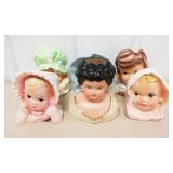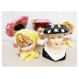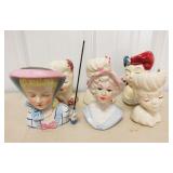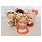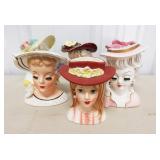 53 LOT OF 5 LARGE LADY HEAD PLANTERS