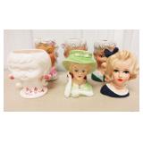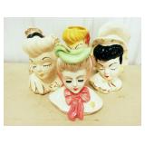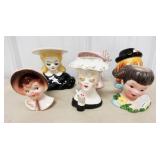 67 LOT OF 6 SMALL LADY HEAD PLANTERS