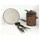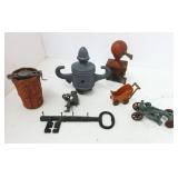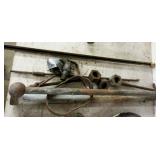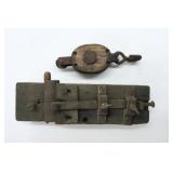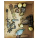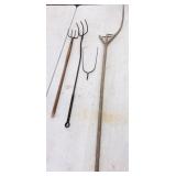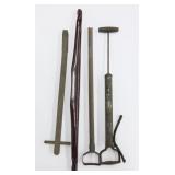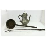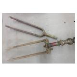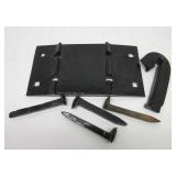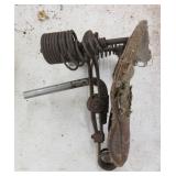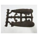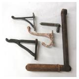 1447 3 CAST IRON COAT HANGERS, HINGE PINTLE AND HAND CRAND