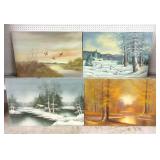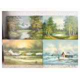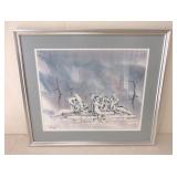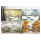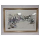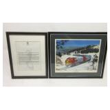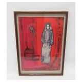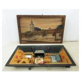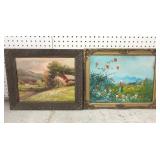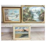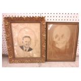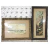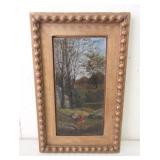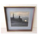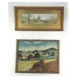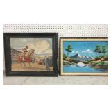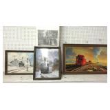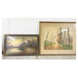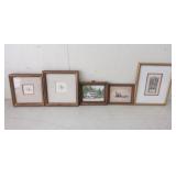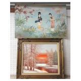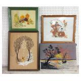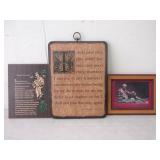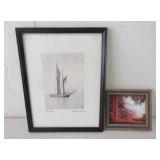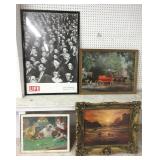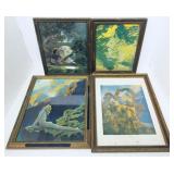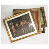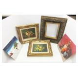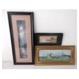 1460 4 FRAMED ITEMS INCLUDING 1 PAINTING, DRAWING, ENAMEL, AND PRINT
