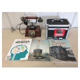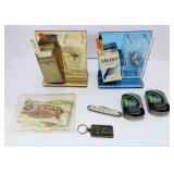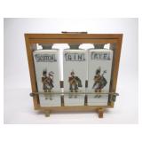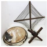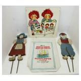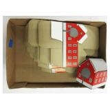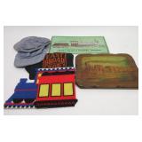 1455 WOODEN TOYS, WOODEN TOWER, LEATHER, MINI FLAG