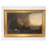 1463 ANTIQUE FRAMED PRINT WITH ANGELS
