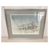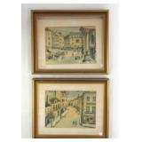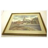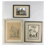 1453 3 FRAMED PICTURES OF TOWN BUILDINGS