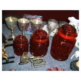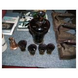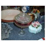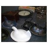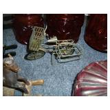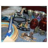 Vintage Railroad and other Lanterns, Mother of Pearl Vases, Amber Glass Console Set, Folding Knives, Pottery Pitcher and Butter Churn, Art Glass, Vintage and New Prints, Large Lot of Carnival Glass, Liquor Decanters including a Train Engine, Replica Flint Lock Pistols, Vintage Metal Signs, Large Lot of Coca Cola Collectables including Fountain, Puzzles, Signs, Chess Set, Tins, Polar Bears, Poker Set, Volley Ball, Glasses and More, Hen on a Nest Collection, Walking Dead Glasses, Lamps, Clown Figures and Music Boxes, Binoculars, Tubs of Yarn, Metal Irons, Fossil and Mineral Books, Holster, Jewelry, Many Oriental Items, Vases, Ginger Jars, Bowls, Large Stand and More, DVD’s and DVD Player, Embroidery Thread, Camping Potty, Bake ware, Sewing Machine, US Flag, Tower Fan w/ Remote, Storage Tubs, Stainless Shelving Unit, Dry Sink, Oak Sofa Table, Ladies Jackets, Prom Dress, Rocking Horses, Kitchen Knife Sets, Wedding Ring Hand Made Quilt, Vintage Steamer Trunks, Metal Piggy Bank, Display Curio, Cobalt Blue Glass and Salt & Pepper, Elephant Collection, Beautiful Lacquer Set, German Beer Stein Collection, Butterfly Lamp, Spray Painter, Heat Gun, Drills, Saws, Hand Tools, Foot Air Pump, Tater & Onion Box, Tall Metal Candle Stands, Small Multi Drawer Chest, Hard Back Books, Sports Cards, Gas Blower, Infinity Car Speaker, Glass Lamp Shades and Much More With Our Four for a Dollar / Free Tables.