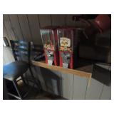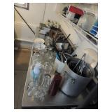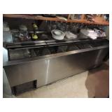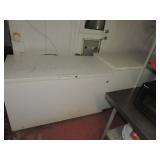 Glassware rack Coffee cups Bunn coffee machine Catering equipment Cocoa machine Stainless prep tables Hobart meat slicer Microwave oven Qty of chest freezers Hanging pot rack Refrigerated salad bar Small antique butcher block Ice cream freezer Heat lamp Hobart meat saw Hatco heat and hold oven – needs work Styrofoam cups Cleaning supplies Meat grinder