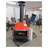 MID CENTURY MODERN/MOD DESIGN CORNER WOODSTOVE, REFURBISHED. 41"H X 38" ON DIAGONAL, TOTAL HIGHT WITH STACK IS 7ft. 6in. MADE FOR USE ON PATIO OR IN YARD.