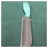 HAND MADE BY A LOCAL ARTIST CUSTOM FILE KNIFE/ COWBOY CUTTER. THIS KNIFE WAS MADE OUT OF A FILE THAT WAS BOUGHT RIGHT HERE ON DO-BID. THE HANDLE IS A CUSTOM POUR RESIN SCALE THAT WAS PURCHASED FROM ANOTHER KNIFE MAKER IN THE ST. CLOUD AREA. PANCAKE SHEATH HAS BEEN ORDERED FOR THIS KNIFE AND WILL BE AVAILABLE AT TIME OF PICK UP AT AN ADDED COST IF INTERESTED. WARRANTY FROM ARTIST: ALL MY KNIVES HAVE A LIFETIME WARRANTY. I WILL REPLACE OR FIX FOR FREE ANYTHING THAT HAPPENS DUE WORKMANSHIP OF MY KNIVES. PLEASE SEE PHOTOS FOR DETAIL