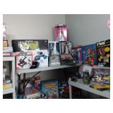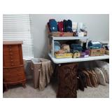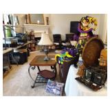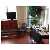 This home is loaded with gorgeous furniture, electronics, games and something for absolutely everyone. Beautiful indoors and outdoors. Entry Way: Glass top and gold metal sofa table with florals and candle holders as well as area rugs. Formal Living Room: Fabulous furniture with 2 wing back chairs, oversized chair with ottoman, sofa, artwork, a Huge Balsam Hill Christmas with remote that lights up in 3 modes, world globe on wooden stand, floor lamps, rugs, round gold metal with glass top coffee table, florals, crystal and decor. Office: Bookcases/desk combo with lots of storage for books, office supplies, an HP Officejet 6310 printer in box, Samsung 31" TV, Ativa LD shredder, Neatdesk scanner and digital filing system (new in Box), HP Photosmart 7510 printer, Canon printer, office supplies, various desk lights, open storage piece, 3 office chairs, artwork and desk accessories. Front Room: Great musical pictures featuring renowned composers, decorative glass and painted wood buffet, leather lounge chair, a large oriental area rug and decorative pillows. Master Bedroom: Gorgeous bedroom furniture - Queen size bed made of wood with a leather inset headboard. 2 matching nightstands, dresser, vanity with built-in electrical outlet with jewelry doors, and drawers, lamps, Vizio 31" flat screen TV, collectible vanity porcelain set, large silk trees, a collection of sea shells and art, clothing rack, plastic storage units and end of bed seating benches as well as a luggage holders for guests. Master Closet: Loads of clothing for children and adults. Designer handbags, bathroom items, shoes, boots, baseball caps, and much more. Kitchen: Lots of small appliances, bakeware and cookware. Handpainted Hasslock Tika Seafood dishes and serving pieces, New pampered chef baking ware in boxes, like new cookies sheets, baking racks, Osterizer blender, FoodSaver machine, several crock pots, Cuisinart Smart Power 7 speed blender, Breadman breadmaker, Griddler by Cuisinart sandwich press, Cutco knives, Black french door Samsung refrigerator, Correlle Bake and Serve coordinates (new in box "Abundance"), matching dishes, Gourmia meat slicer, Black and Decker countertop oven and tons of utensils. There is also pyrex, corning ware, serving pieces, Waring waffle maker, Farberware 4 slice toaster, Cuisinart bagel toaster, Cuisinart 2 slice toaster, Tupperware, Potterybarn serving dishes, electric knive, lots of white dishes, mixing bowls and much more. There is also a large table with 2 leaves, 8 chairs with leather seats, 4 large round metal bar stools with leather seats, Fitz and Floyd decorative serving pieces, platters, candle holders, Blue and white collectible dishes, crystal wine glasses, silver plate, complete set of Golden Imperial Flatware, teapots, collectible cups and saucers and more. Laundry Room: Whirlpool Duet front load washer and dryer, light bulbs, wooden spindle shelf, wicker baskets, small ironing boards, cleaning products and laundry supplies. Sewing notions, rotary cutting board, Speedy by White 2900 Serger machine and fabric pieces. Den: Electronics, games, costume jewelry and decor to start. Electronics include: Dell Inspirationl N5030 Intel Pentium windows 7, Vaio PCV RX 779 Intel Pentium tower, HP Pavillon Elite e9220y AMD Phenem II x 4 tower, Desktop computer (AMP Athlen, AMP Radson, Xpress 200, Leneva Yoga 2 P80, Interl core i5 128 with clean install of Window, Sony 5 disc CD changer, RCA DVD player, Insignia monitor, Samsung monitor, Dell monitor, the Singing Machine Karaoke system with microphone and Binoculars from Cabela's. There is also a Panasonic turntable, Panasonic 50" flat screen TV, Sony Dream Machine, Logitech speaker system and lots of collectible magazines that include Super Mario Brothers, WII, Poke`man, Zelda Nintendo DS and many more. We have a Playstation 2 mini slim console system with 2 remotes, playstation 2 games, Nintendo64 storage box and lots of cartridges. There are also 2 leather gaming chairs with matching footstools, beautiful storage cabinet with would allow for any size TV, tns of CD's, & DVD's, wooden disc holders, small sofa table, Lamps, end table with drawer and round coffee table, lots of artwork and lots of decor. There’s also a Table filled with chicken decor, candle holders, pitchers, Decorative pieces, storage boxes and a Large Fitz and Floyd Rooster. 2nd Bedroom: Double bed with headboard and footboard, great vintage vanity dresser with folding side mirrors, small vanity with stool, nightstand, desk unit, aVizio HDMI/HDTV 31" TV, 2 Quilt stands, lots of beautiful handmade Quilts, pillows, aprons, upholstered chair and lamps. 3rd Bedroom: Board Games, board games, board games, toys and lots more. Wii GuitarHero, Graco car seat, wooden rocking horse, stuffed animals, children's books, new Barbie Dolls in boxes, several K'nex building sets, baby toys and play sets, paint sets, collectible wooden toy sets, Student desk with Chair, small nightstand, dresser with drawers and shelves, complete 1999 Winnie the pooh collection,1998 & 1999 McDonalds ty beanie baby collection, Stella of Winx club- collectable doll and many more toys. 4th Bedroom: Dresser with mirror, Chest of Drawers with top cabinet, matching nightstand (there is also a matching desk and bookcase located in the garage), standing jewelry chest, Insignia 25" flatscreen TV and loads of linens, vintage doilies and handkerchiefs. There are custom made lined draperies with matching cornice boards, towels, sheets, pillows and blankets. Outdoors: Outdoor Patio sofa's, iron tables, lots of patio chairs, gas grill, pool toys, ceramic and metal stacking small side tables, outdoor toys, badminton set, corn hole boards, gas grill, propane tanks, iron yard art, table with built-in ice bucket, large tent, yard décor and more…large painted boards from Marcus marching band program Garage: Various ladders and step stools, tools, (lots of extra furniture)TV stand, bookcase, small rolltop desk, office chai