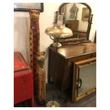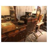 On-Line Action at Caplan's Auction! Bidding opens Thursday September 24th and will continue up to closing time which starts 7:00pm on Wednesday September 30th. A quality sale to include 30 Antique Railroad Lanterns, 60 lots Fantastic Antique, Oak, Mahogany and Shabby Chic Furniture to include Oak Lawyer's Bookcase, Antique Oak 7 Board Banquet Table, Desks, etc., old Buggy Seat, Fancy Depression Bedroom Set, Marble Top Victorian Furniture, Modern Credenzas and Curios, etc. Trunks, 60" Samsung Aquuos Flat Screen Television, Dozen Lots of very nice Gold Estate Jewelry includes Diamonds, Pearls, Gemstones, etc., Stained Glass Panels, Oriental Items, old Bell, Milk Cans, old Coke Double Cooler, old Clocks, many Mirrors, Signed Art and more!
