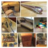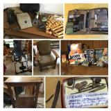Highlights include vintage murphy bed, vintage cameras, US army/navy sword + knives, onion drill, vintage furniture, tins, mission oak furniture. This is a clean out to get access to more cool things. Sale #2 will be in a week or so. House is 2-story, with packed garage, TWO attics and outdoor shed. It's never ending! Happy Bidding!