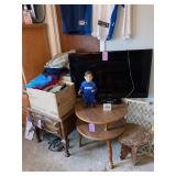 Xtant amplifiers, nice selection of books, personal care products, impressive selection of Dallas Mavericks clothing and memorabilia, linens, lift chair, recliner, love seat, (needs a slip-cover), vintage rocker, mirrors, nice rolling office chair, lamps, luggage, dressers, chests, king size bed, twin bed, accent tables, mens and ladies clothing and shoes, 1968 Naval photo from Ft. Myers, small computer desk, pillows, beautiful vintage Hull pitcher, speakers, small Sony TV, large Vizio TV, Maytag Bravo washer, small Kenmore chest freezer, (it aint pretty, but it works great !), storage trunk, small shop vac, new dolly, Honda self-propelled push mower, Toro self-propelled push mower, boxes of wrenches, screwdrivers, etc., bakeware, Nesco roaster, (it’ll hold that big ol turkey !), unicorn collection, Occupied Japan, Rosenthal, Franciscan collector plates, small kitchen appliances, boxes of kitchen gadgets and knives, Barclay china, Corning, Crown Royal glassware, Panasonic microwave, light oak dinette w/4 chairs, light oak lighted china/curio display, vintage lighted curio cabinet, more books, New Braunfels smoker/pit, and more.