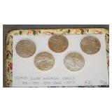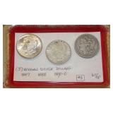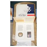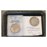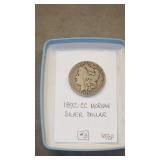 COINS INCLUDING (30) MORGAN SILVER DOLLARS (1878-CC, 1891-CC, 1892-CC, 1892-S, ETC..), AMERICAN EAGLES, WALKING LIBERTY, FRANKLIN AND KENNEDY HALF DOLLARS, COMMEMORATIVES, SILVER CERTIFICATES & FEDERAL RESERVE NOTES, U.S. & FOREIGN STAMPS.